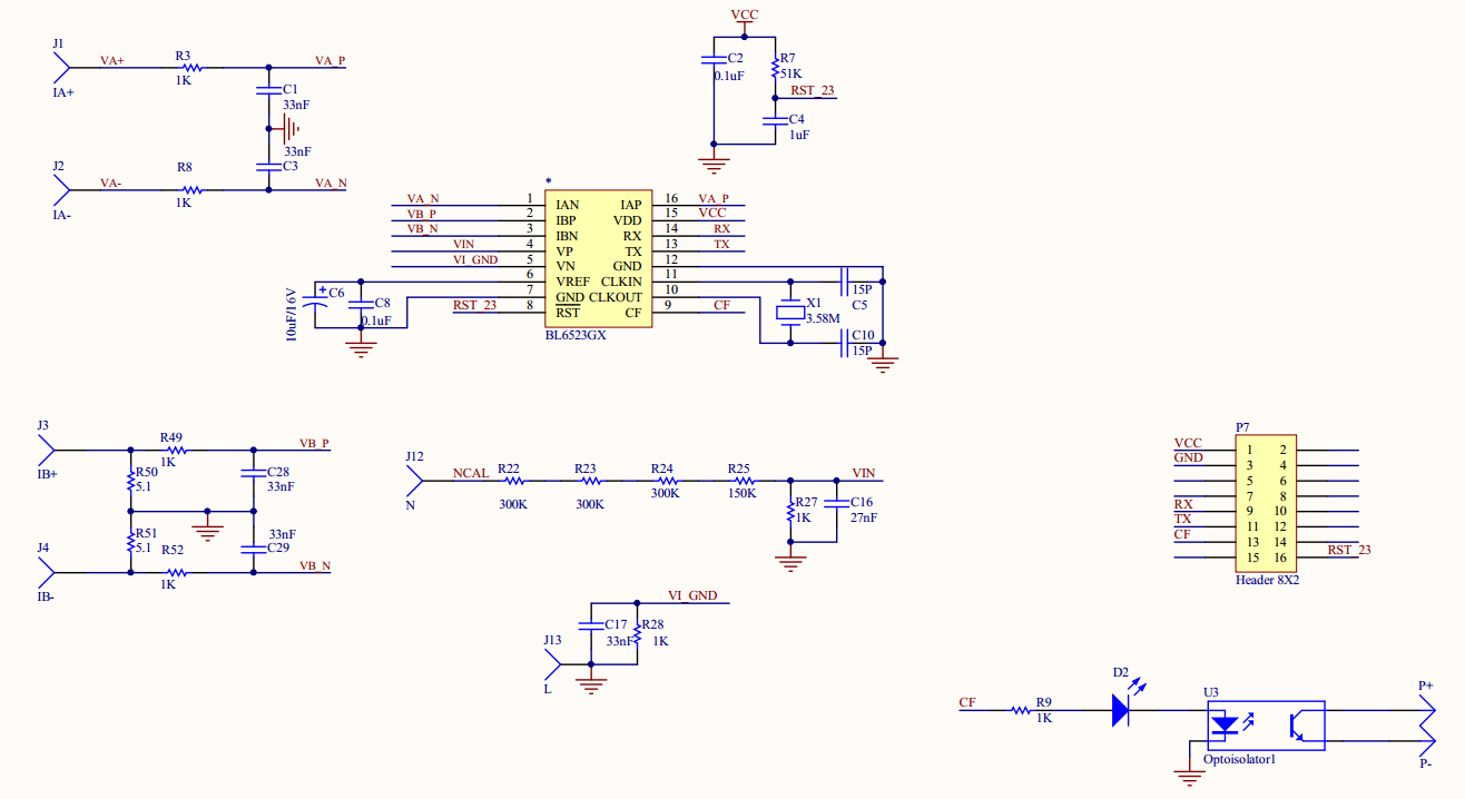 - 两个电流采样端,采样火线和零线电流