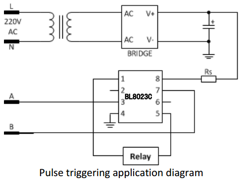 BL8023C is a bi-direction relay driver circuit, used to control the magnetic latching relay, with large output capability, ultra-low power consumption. It can be widely used in smart meters and other pulses, level control applications. BL8023C can provide 300mA typical driving current, which will different according to the relay coil resistance. The input High Level Threshold of BL8023C is 3V, making it compatible with most single chip microcontroller. BL8023C is available in SOP8 and DIP8 packages.