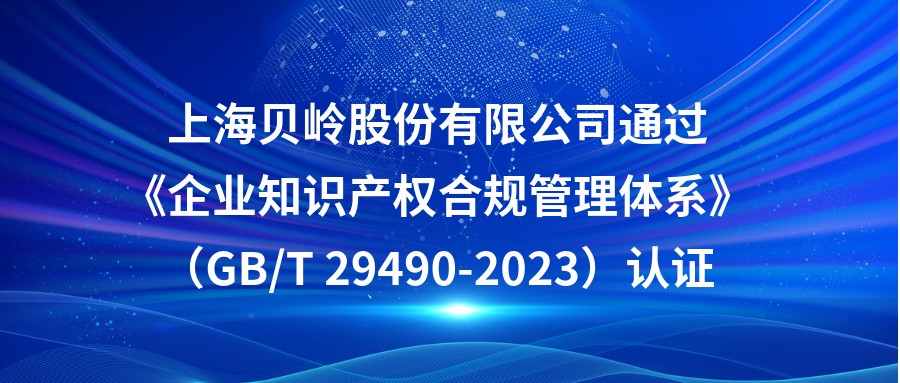 上海贝岭股份有限公司通过 《企业知识产权合规管理体系》(GB/T 29490-2023)认证