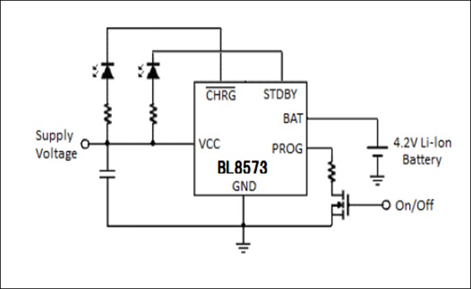 The BL8573 is a single cell, fully integrated constant current (CC)/constant voltage (CV) Li-ion battery charger. Its compact package with minimum external components requirement makes the BL8573 ideal for portable applications. No external sense resistor or blocking diode is necessary for the BL8573. Build-in thermal feedback mechanism regulates the charge current to control the die temperature during high power operation or at elevated ambient temperature.The BL8573 has a pre-charge function for trickle charging deeply discharged batteries. The fast charge current can be programmed by an external resistor. CV regulation mode is automatically enabled once the battery’s charging curve reaches the constant voltage portion. The output current then decays and is finally terminated once the charge current drops to 1/10th of the programmed value. The BL8573 keeps monitoring the battery voltage and enables a new charge cycle once the voltage drops by 150mV below the CV value.Power supply state is constantly monitored and the battery drain current is reduced to minimum value automatically when the BL8573 senses a lack of input power. In its shutdown mode, the BL8573 can reduce the supply current to less than 25μA. A status pin outputs a logic HIGH/LOW to indicate the charging status and the presence of power supply. Other features include charge current monitor, under-voltage lockout.