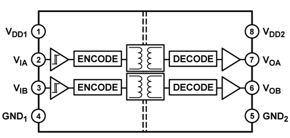 两通道数字隔离芯片,系列产品。产品PIN2PIN ISO772x