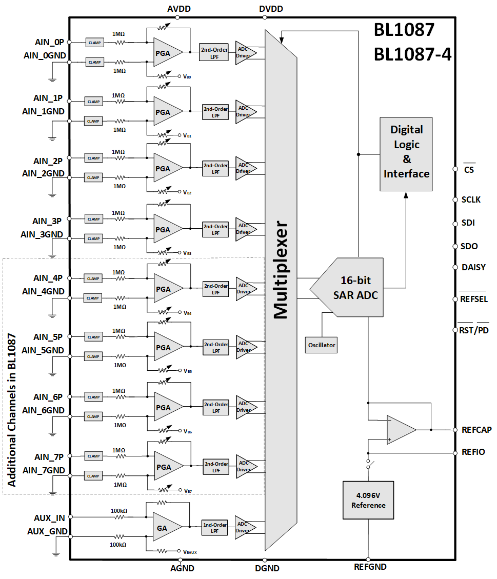 16位、600kSPS、4和8通道、单电源、双极性输入SAR ADC