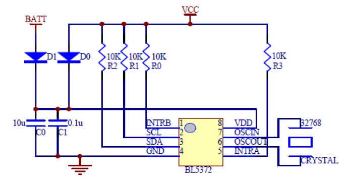 是一款低功耗实时时钟电路,通过I2C两线接口电路可以与CPU实时通信,主要用于一切需要提供时基的系统中